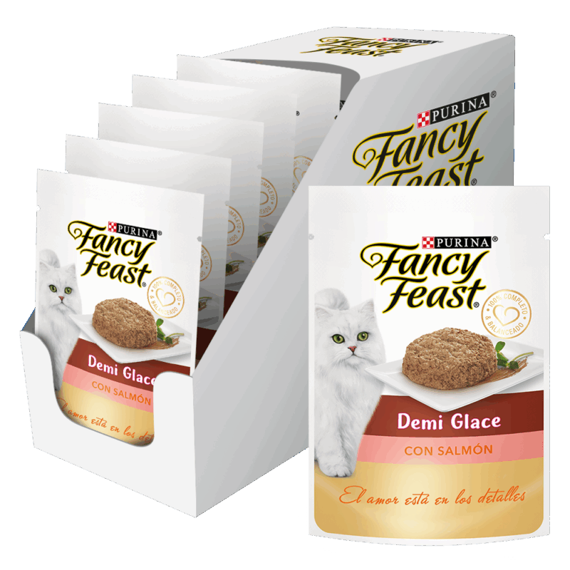 Agua suficiente para proceso, carne de salmón, gluten de trigo y/o harina de soya, carne de pollo, hígado y/o corazón de pollo e/o hígado y/o vísceras de cerdo, almidón de maíz, glicina, dextrosa, sal*, cloruro de potasio, fosfato y/o carbonato de calcio, colorante caramelo natural, vitaminas (A, D3. E, K3, mononitrato de tiamina (B1), riboflavina (B2), niacina (B3), pantotenato de calcio (B5), hidrocloruro de piridoxina (B6), biotina (B7), ácido fólico (B9), cianocobalamina (B12), cloruro de colina), minerales ((sulfatos: zinc, hierro, manganeso, cobre), minerales de alta absorción (proteinatos/glicinatos: zinc, hierro, manganeso, cobre, selenio), yodato de calcio, selenito de sodio), taurina.