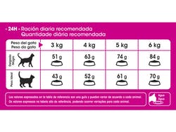 Contenido energético adaptado que ayuda a mantener el peso ideal del gato con paladar exigente.