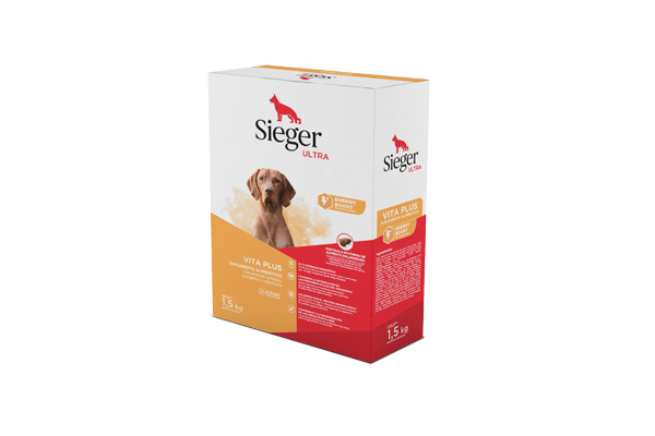 Sieger Ultra Vita Plus es un suplemento multivitamínimo en forma de croqueta para perros con déficit nutricional. Posee alta densidad energética y gran concentración de nutrientes esenciales, que colaboran con una mejor calidad de vida de perros con requerimientos nutricionales especiales. Hay perros que en cierta etapa de su vida necesitan un aporte vitamínico extra al de su alimentación diaria: cachorros con deficiencias nutricionales, hembras lactantes, gerontes, períodos post operatorios y de convalencia; así como también los perros que están expuestos a condiciones de alta exigencia, como el training, competencia, guardia, exposiciones, condiciones extremas de temperatura, etc.