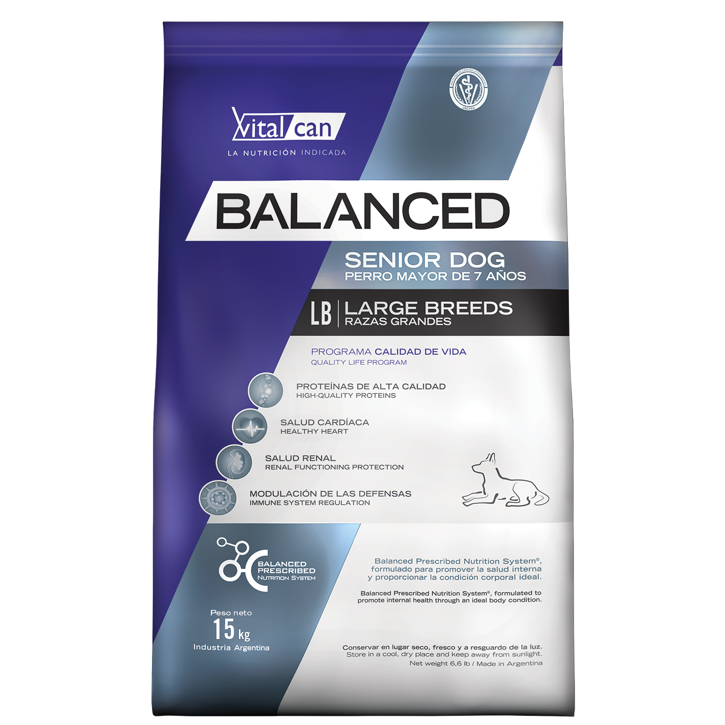 Vitalcan Balanced es un alimento Indicado para perros maduros de raza grande mayores de 7 años.