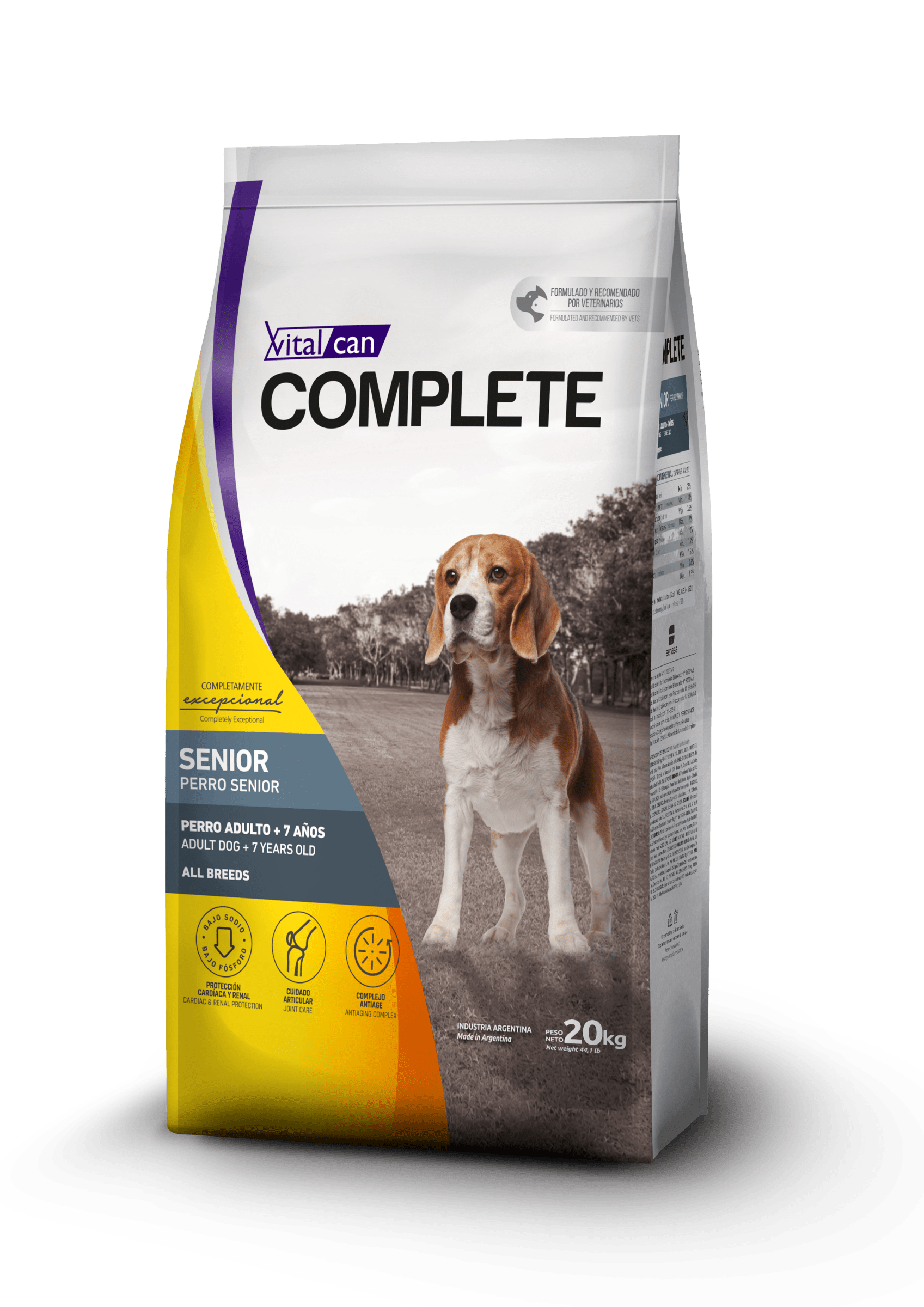 Vitalcan Complete es ideal para perros maduros (mayores a 7 años) de razas medianas y grandes porque les proporciona: